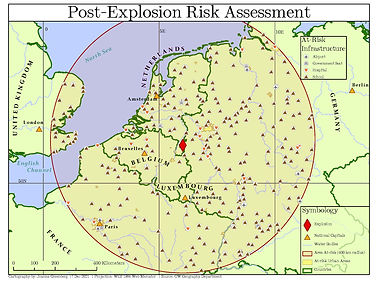 A buffer around a disaster epicenter was created and then all relevant infrastructure was clipped so that only the points within the buffer were displayed.